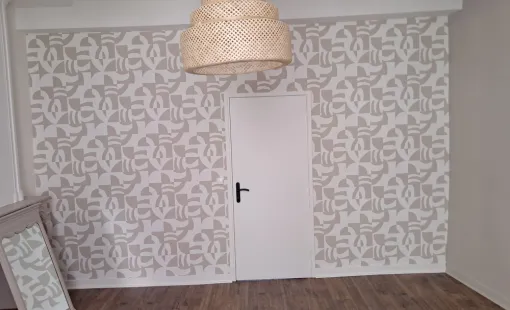 Rénovation d'un salon-séjour :  remplacement du papier peint par de la peinture: Arrachage du papier peint, préparation des murs, ratissage , application d'une sous-couche d'impression et 2 couches…