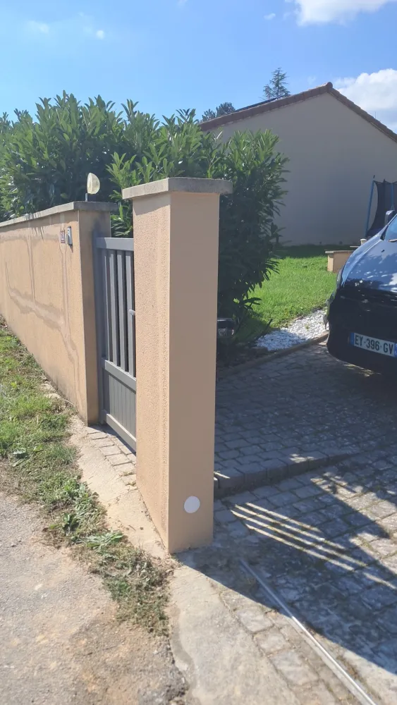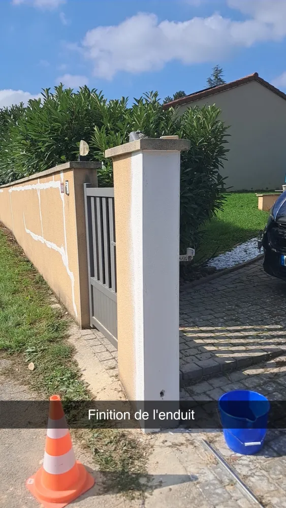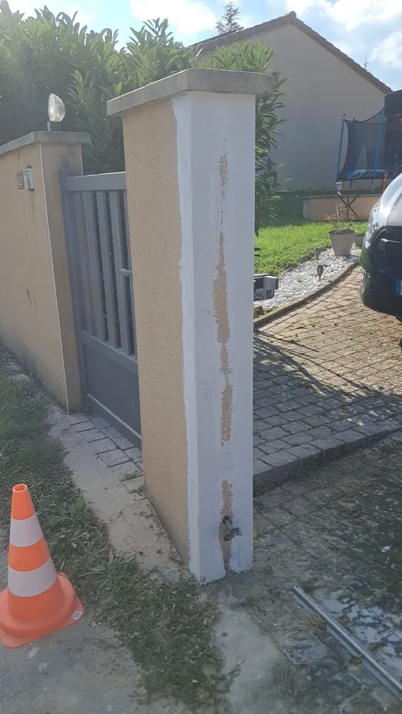 Reprise d'un muret et d'un pilier de portail, Reprise des arrêtes métalliques, Reprise du crépi et 2 couches de peinture spéciale façade