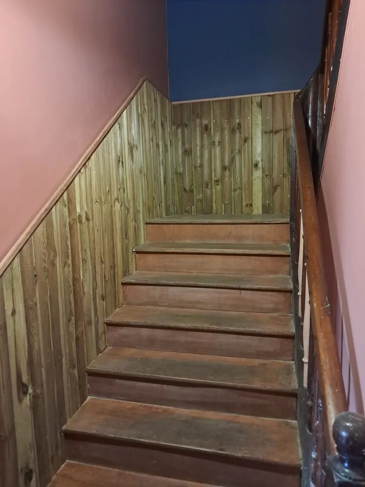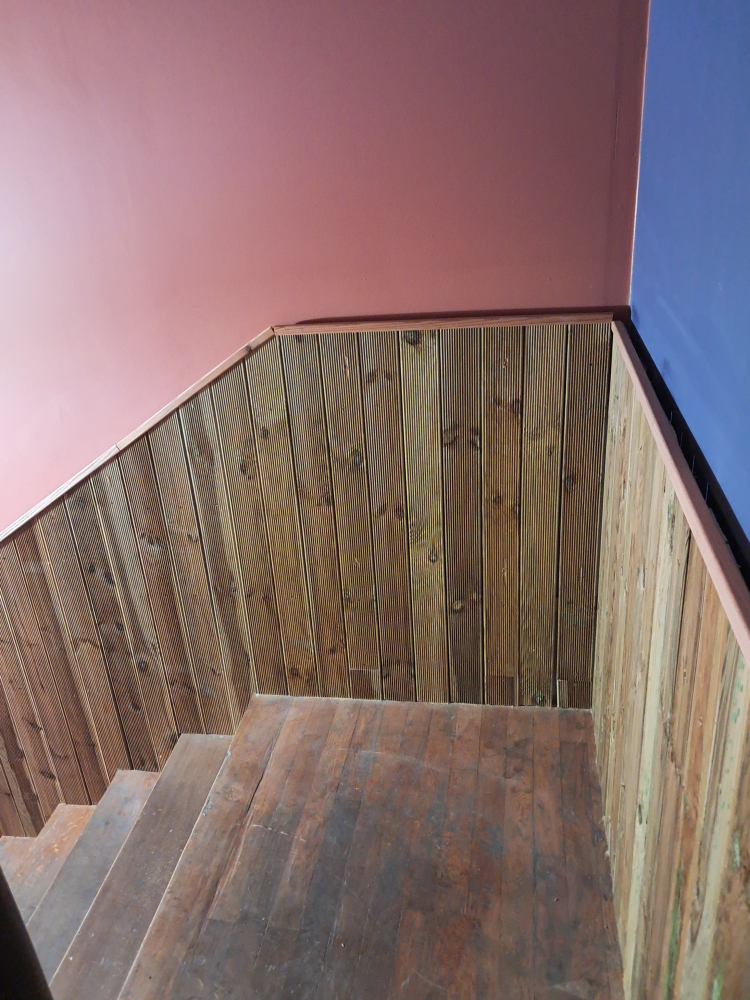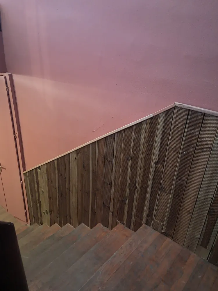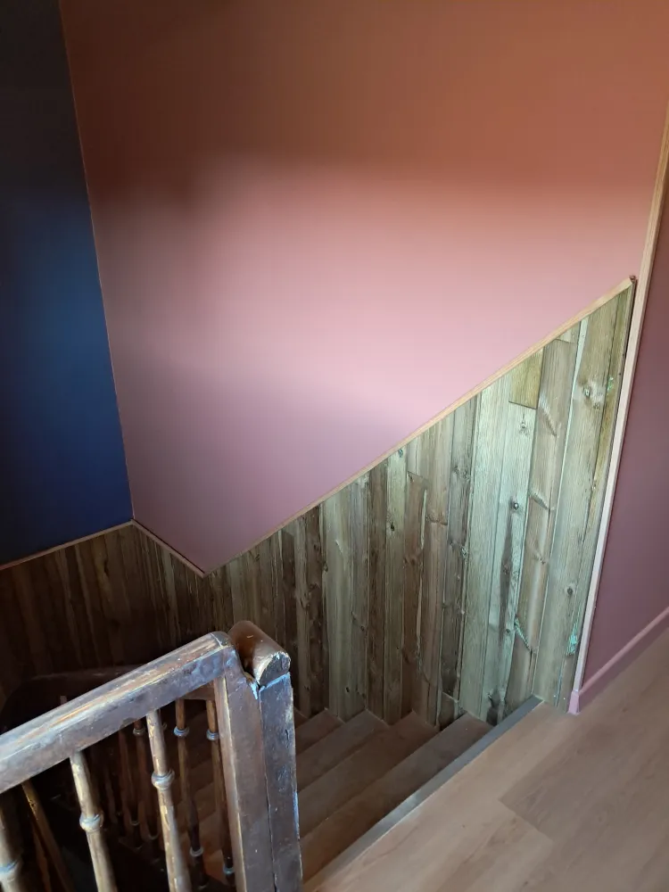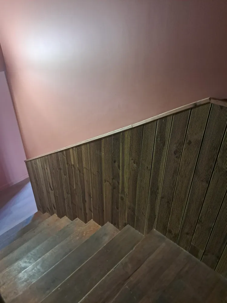 Pose de lamme en bois sur tasseaux en guise de protection murale