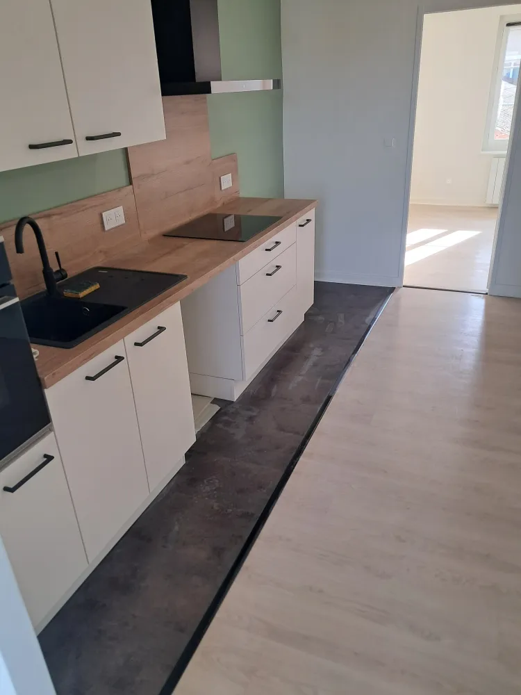 Demolition d une cloison et d 'un placard, démontage de l'ancienne cuisine.