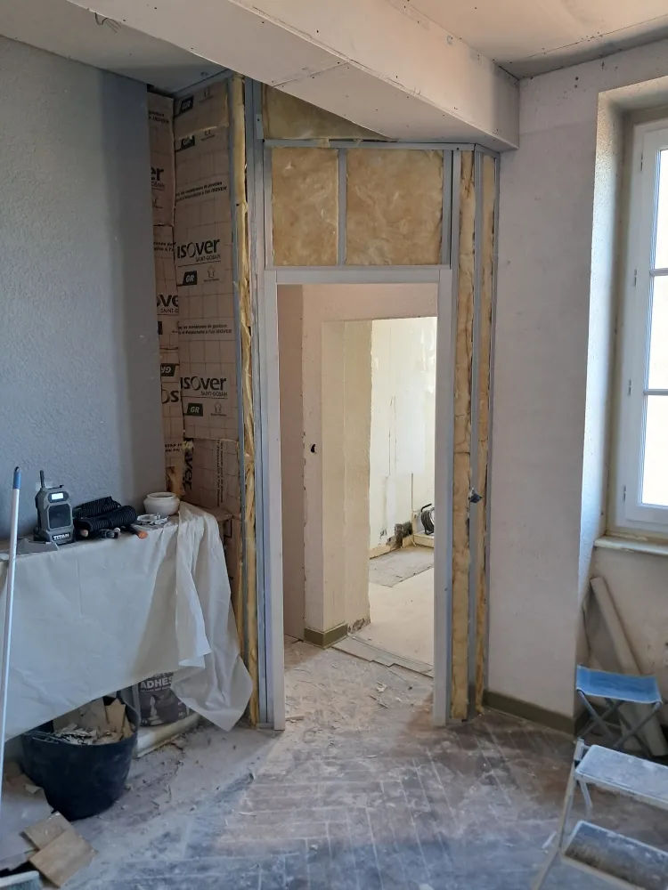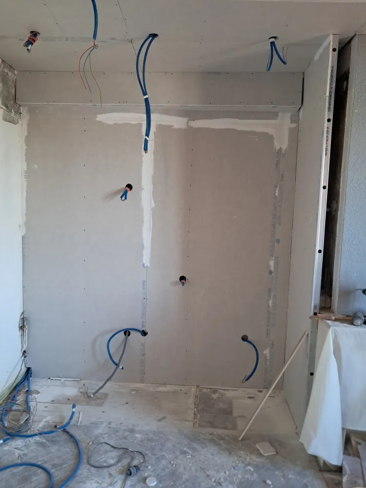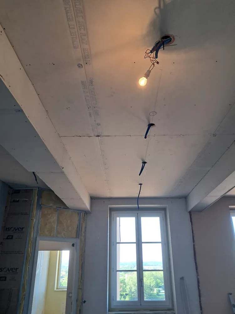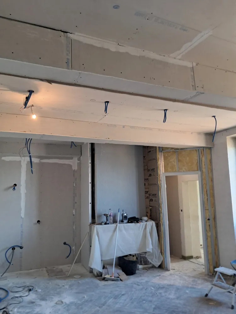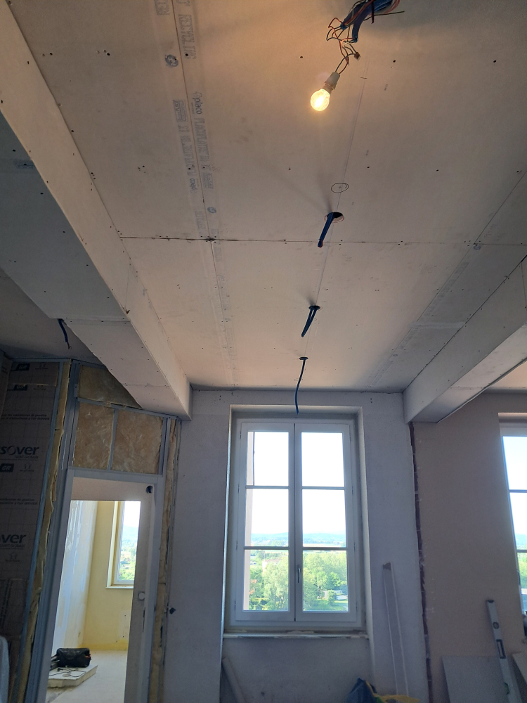 Pose de placo plâtre BA13 pour un plafond et des murs dans un appartement