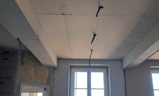 Pose de placo plâtre BA13 pour un plafond et des murs dans un appartement